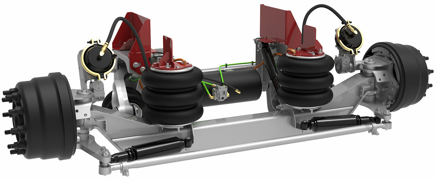 The 8K and 10K auxiliary suspensions incorporate heavy duty bearings and are engineered using proprietary brakes and drums. The 13.5K suspension is available with optional drum or disc brakes. Our cast trailing arms provide increased durability while simplifying the suspension’s lifting geometry. A compact mounting envelope, combined with an optional integrated air control system, also saves valuable frame rail space.